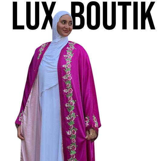 Kimono Fuchsia Brodé – Élégance Royale et Touche Florale