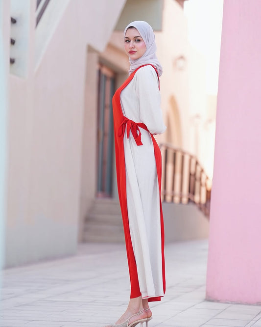 En PromotionRobe Bicolore Moderne – Élégance Rouge & Beige