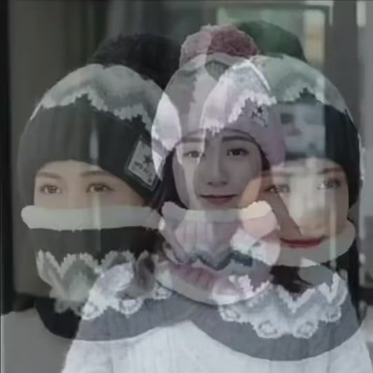En Promotionطقم قبعة وغطاء رقبة صوفي بنقوش جميلة للشتاء
