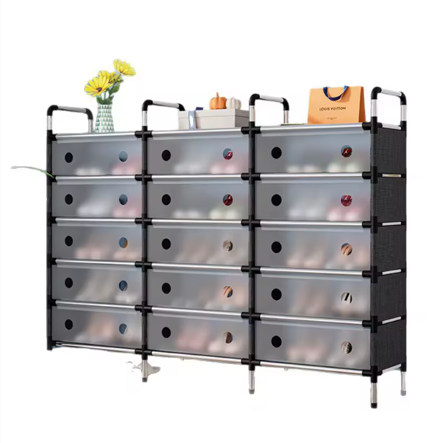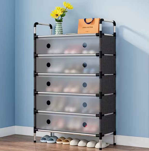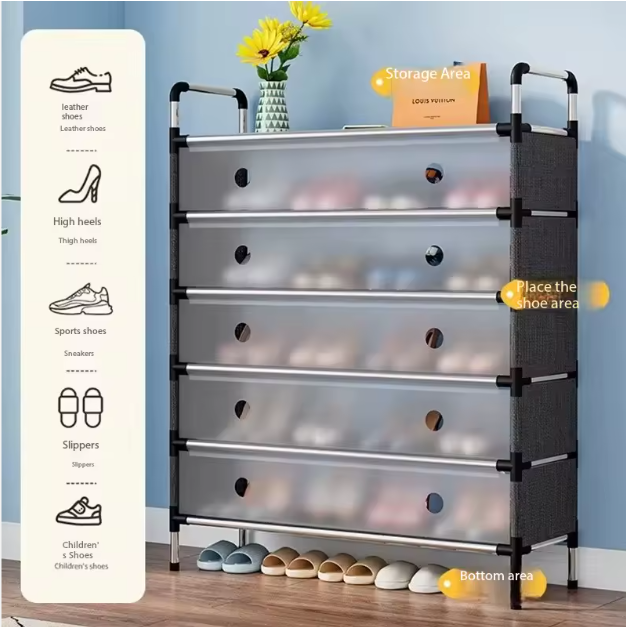 خزانة أحذية متعددة الطبقات بواجهة مقاومة للغبار وتصميم عصري للتنظيم المنزلي
