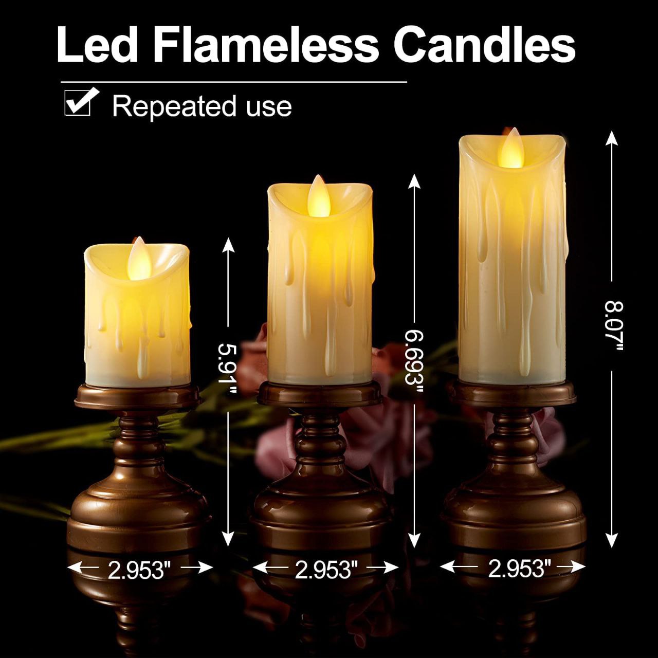 يضيف هذا الطقم من الشموع LED لمسة ملكية لأي ركن في المنزل بفضل قاعدته الذهبية اللامعة وتصميمه الواقعي الأنيق.