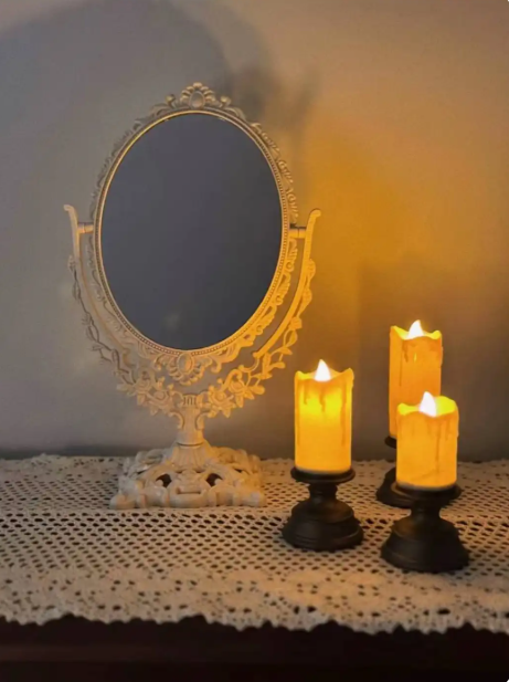 تجمع هذه الشموع بين الجمالية والفخامة بفضل تأثير الذوبان الواقعي والوميض الخفيف الذي يمنحها مظهراً قريباً جداً من الشموع الحقيقية.