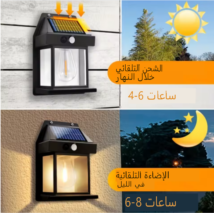 مصنوع بجودة عالية ومقاوم للعوامل الخارجية مثل المطر والحرارة، ليبقى يعمل بكفاءة طوال السنة. يحتاج 4–6 ساعات من الشحن خلال النهار، ويوفّر 6–8 ساعات من الإضاءة المتواصلة ليلًا. تصميمه الأنيق يُناسب جميع أنواع الجدران والمداخل.