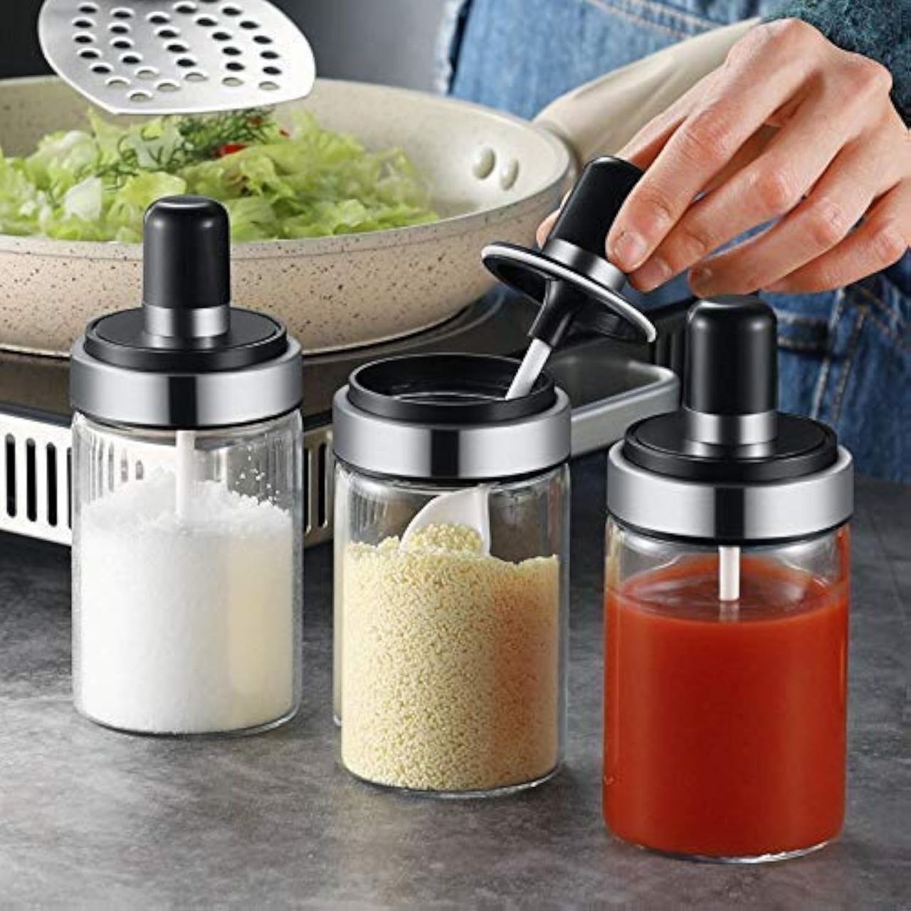 علب تنظيم التوابل للمطبخ مع ملعقة مدمجة – عرض خاص