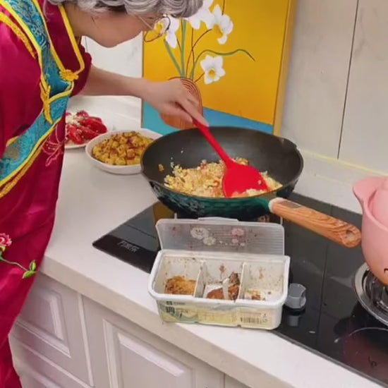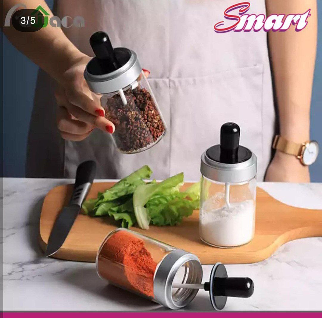 تُسهّل هذه العلبة الذكية عملية إضافة التوابل والسكر والملح إلى الطعام بفضل الملعقة المدمجة داخل الغطاء. بضغطة بسيطة، يمكنك أخذ الكمية المناسبة دون أن تلمس يدك التوابل أو تنسكب خارج العلبة.