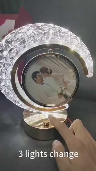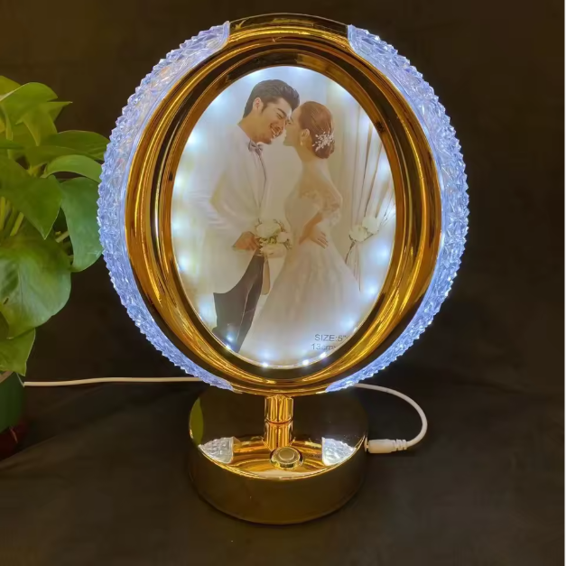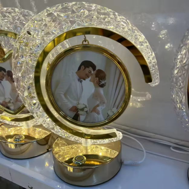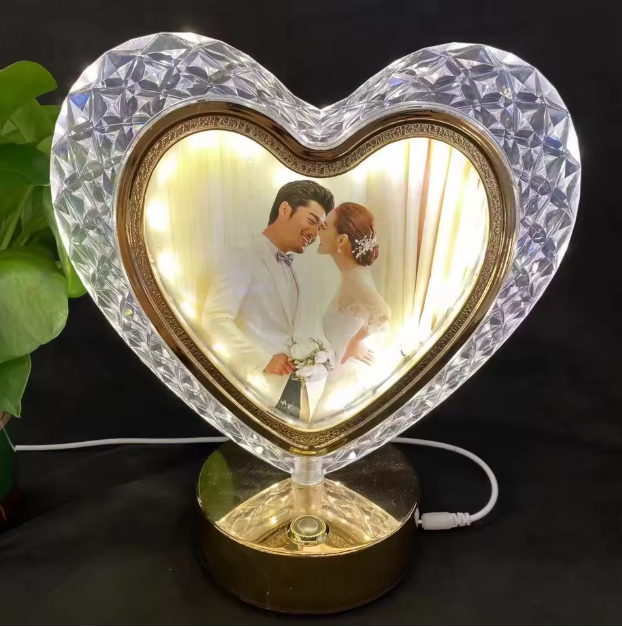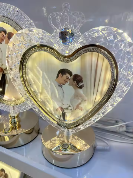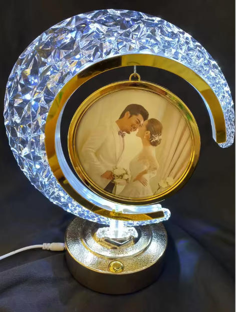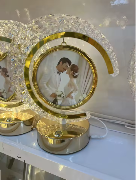 هذا المصباح الأنيق يتيح لك وضع صورتك الخاصة داخل الإطار المضيء، سواء كانت صورة زفاف، خطوبة، ذكرى مميزة، أو صورة مع شخص عزيز عليك. ومع انعكاس الإضاءة على الكريستال اللامع، تتحول الصورة إلى لوحة مضيئة مفعمة بالجمال والمشاعر، لتصبح قطعة فنية تنشر الدفء في أي مكان تُوضع فيه.