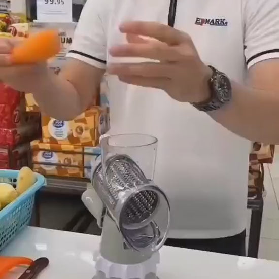 تساعدك هذه الآلة اليدوية على تقطيع الخضر والفواكه بسرعة وسهولة، بفضل الشفرات الدوّارة الحادة التي تمنحك تقطيعاً مثالياً في ثوانٍ فقط. مثالية للجزر، الكوسة، البطاطس، الجبن وجميع التحضيرات اليومية.