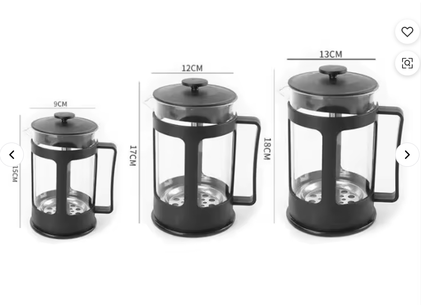 تمنحك هذه آلة تحضير القهوة الفرنسية (French Press) إمكانية إعداد قهوة طازجة ونقية في دقائق معدودة، دون حاجة إلى أجهزة كهربائية أو كبسولات. يكفي وضع البن المطحون وإضافة الماء الساخن، ثم الضغط برفق للحصول على قهوة مركّزة بطعم غني ورائحة منعشة، كما يحبّها عشّاق القهوة الحقيقية.