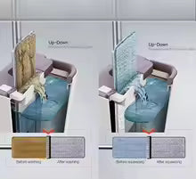 تساعدك هذه الممسحة مع الدلو على تنظيف الأرضيات بكفاءة عالية دون مجهود، بفضل نظام العصر الذكي الذي يزيل الماء الزائد ويترك الأرض نظيفة وجافة في وقت قصير.
