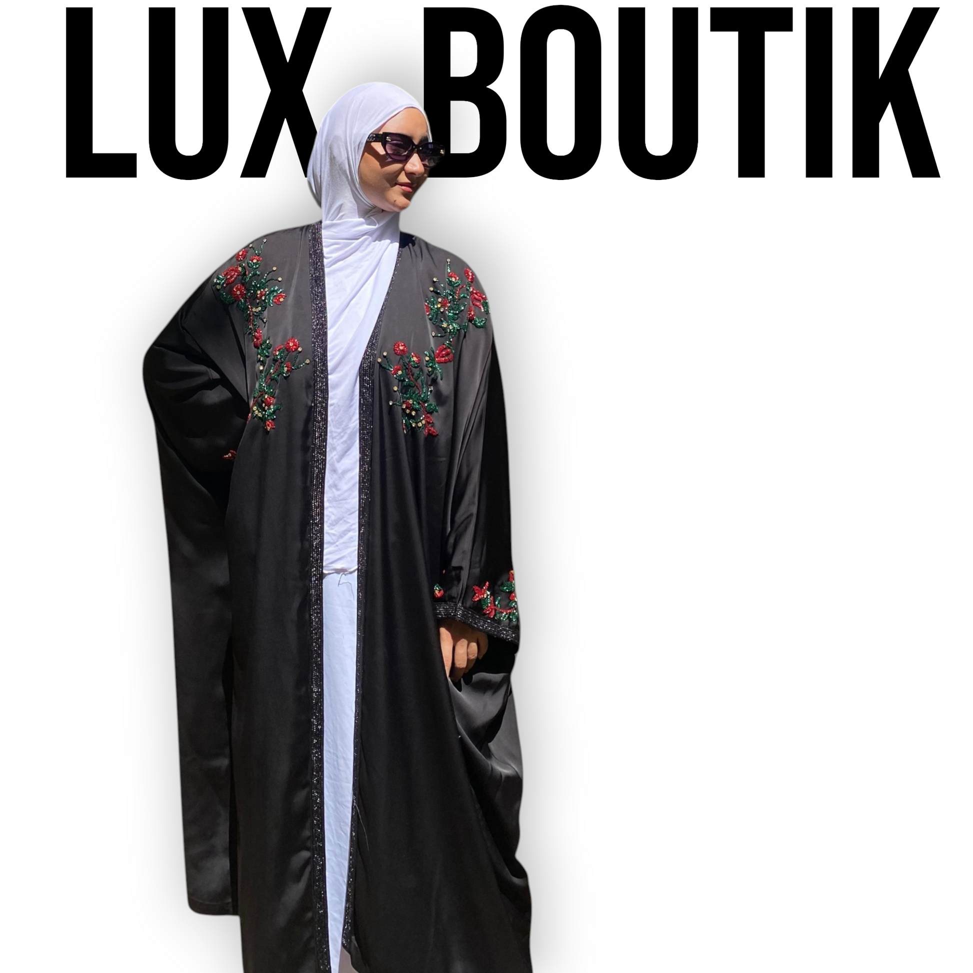 Distinguez-vous avec ce kimono noir raffiné, orné de broderies florales rouges et vertes qui lui apportent une touche féminine et séduisante. Un design qui allie puissance et élégance pour une présence exceptionnelle.