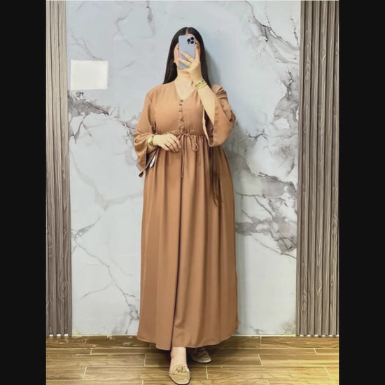Cette robe couleur caramel incarne la douceur et le raffinement, idéale pour un look chic et naturel.